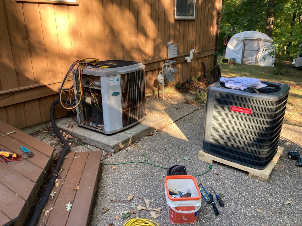 Air conditioner replacement - out with the Carrier a/c & in with the new Goodman